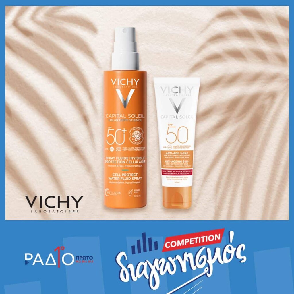 Μέσα από την εκπομπή Turn It Up, καθημερινά 14:00 – 16:00 με τον Πέτρο Αθανασίου διεκδικείτε αντηλιακά πορϊόντα Vichy για το πρόσωπο και το σώμα. Στείλτε VICHY κενό και το ονοματεπώνυμό σας στο 99990894 δωρεάν χωρίς χρέωση και μπέιτε στην κλήρωση.