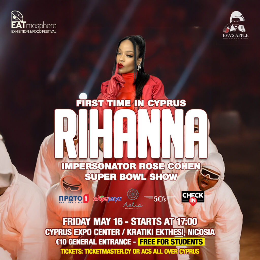 Για ΠΡΩΤΗ ΦΟΡΑ στην Κύπρο, η εκρηκτική Rose Cohen, επίσημη impersonator της Rihanna, καταφθάνει ΑΠΕΥΘΕΙΑΣ από τη Βραζιλία για να παρουσιάσει το Super Bowl Show όπως δεν το έχεις ξαναδεί!